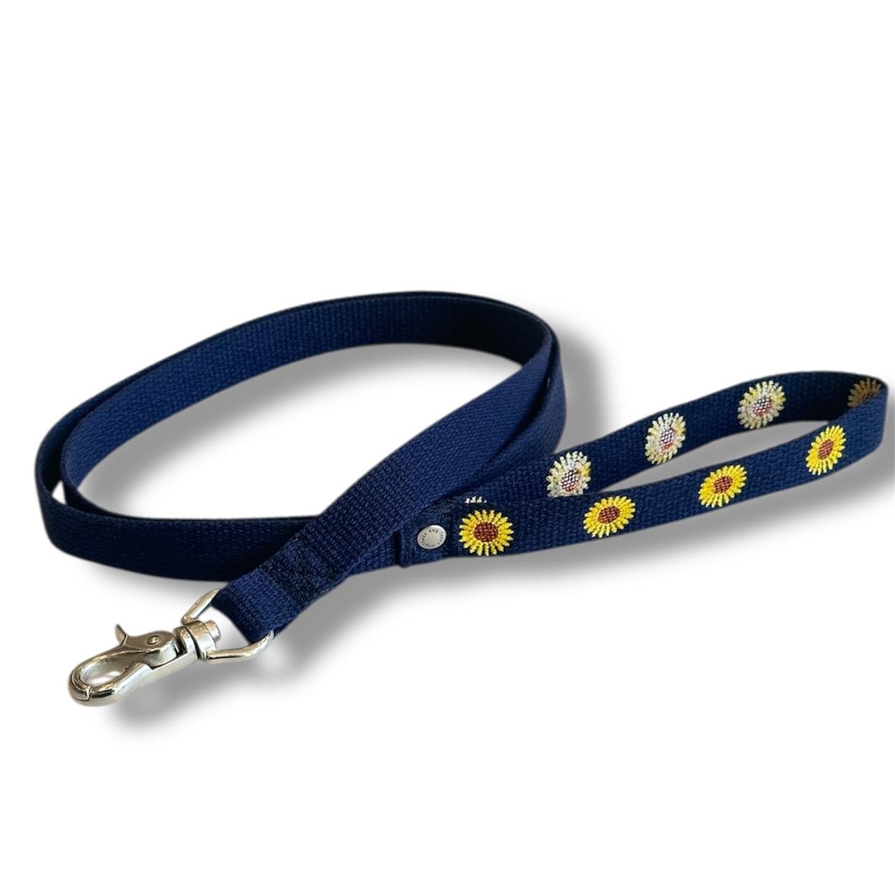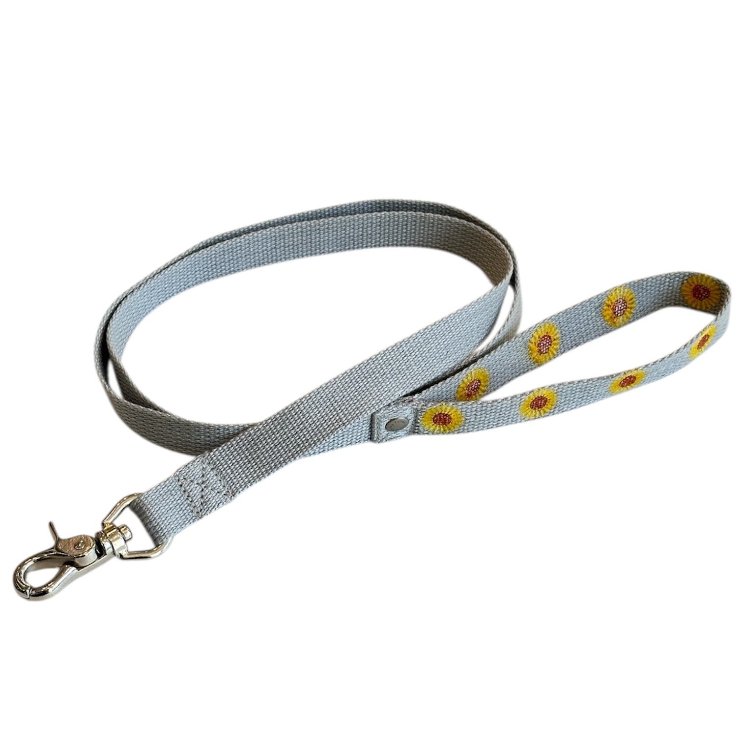 小型犬向けの「ヒマワリ」の刺繍が施された散歩用リードです。